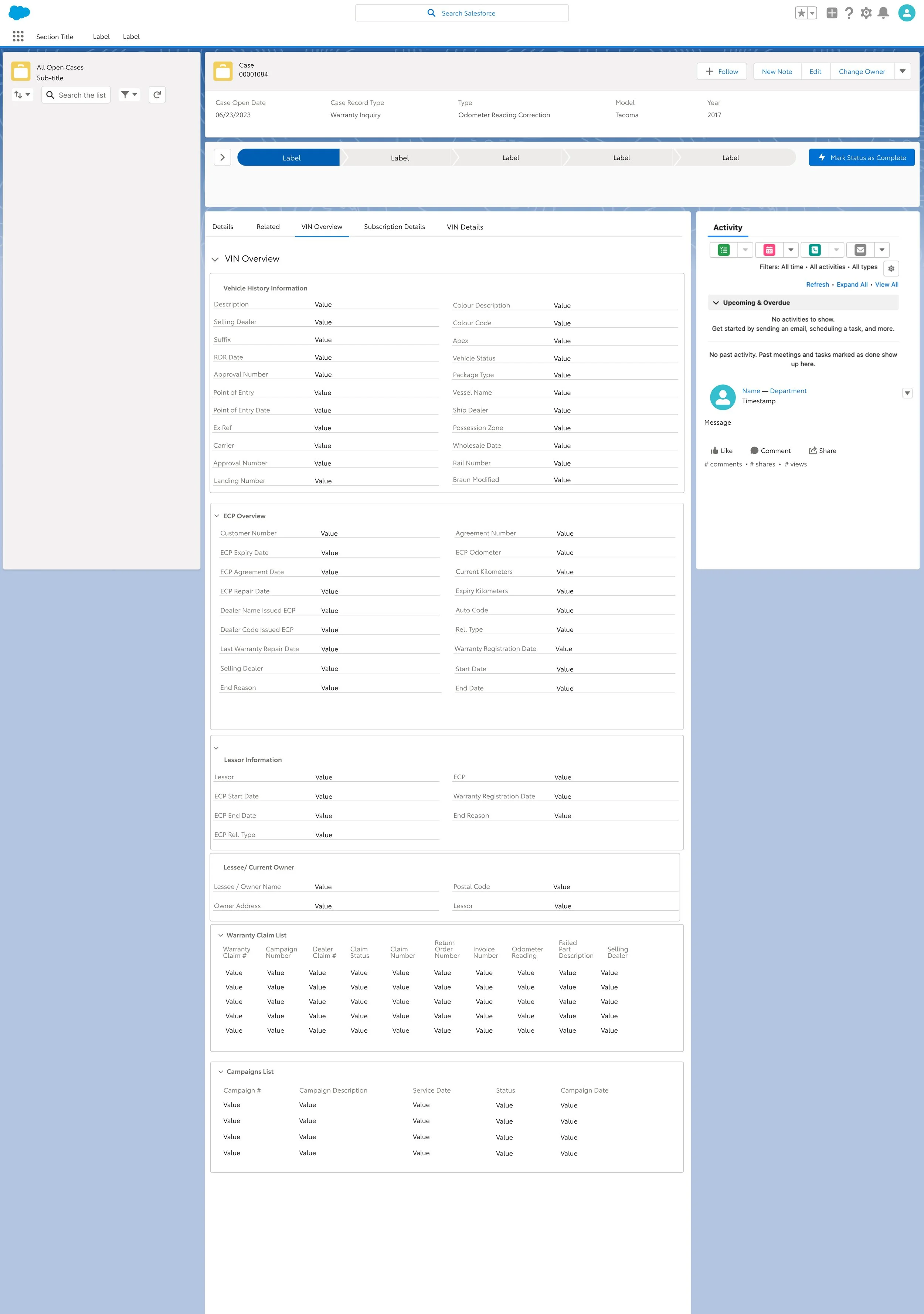 Design a simplified case management experience using Salesforce Experience Cloud, Salesforce AutoCloud, and Omnistudio using Omniscript for car dealership locations.