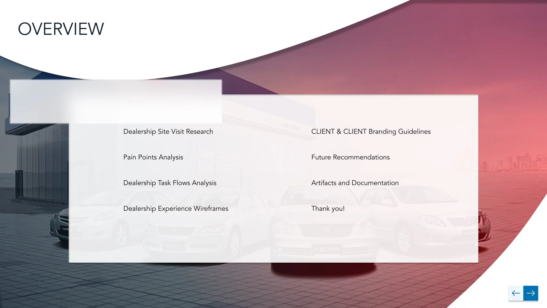 We created this project plan artifact in Mural to illustrate to the client where we were and where we’d like to go for the project overall. There were many moving parts to this project so clearly communicating status and expectations was critical.